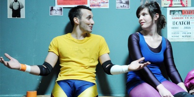 L’amour, c’est d’ailleurs le sujet principal de Catch, celle entre Mathias (Martin Pautard) et Léa (Judith Davis). Pour Judith Davis, qui vient de rôles plutôt graves au cinéma et pas forcement plus joyeux au théâtre, c’est un vrai changement de cap "Tous les registres m’intéressent (Judith Davis)", une actrice visiblement heureuse de travailler pour la Nouvelle Trilogie "Je les connaissais via « Hard », que j’avais vu et beaucoup aimé. Avec Mehdi on se comprend bien et son absence d’expérience n’est pas du tout un problème. C’est très excitant de faire partir du début de la carrière de quelqu’un." Sans être moins enthousiaste, Martin Pautard nous avoue quand même avoir "fait beaucoup de sports de combats, mais le casting n’était pas axé là-dessus. Le personnage n’est pas un très bon catcheur. Mathias prend cher pendant les 3 épisodes". Si Mehdi Ouahab a appris à connaître et à aimer le catch il y a quelques temps déjà, ni Judith ni Martin n’étaient familiers de cet univers. Deux jours de formation pour les familiariser avec ce sport et zou… en lycra ! Du coup, s’ils réalisent pas mal de figures, ils sont doublés dans les scènes de catch avec des prises difficiles. Il était impossible pour Judith et Martin de tout faire, sous peine de passer plusieurs journées en minerve.