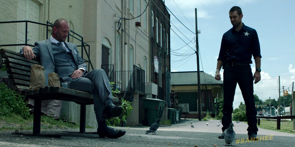 Quand je disais plus tôt que Banshee ne manque pas de très bons méchants, je fais allusion à plein de monde, et même à ce Méchant de la Semaine, le mec en costume qui vient récupérer Jason Hood et prend quand même le temps de nourrir les pigeons.