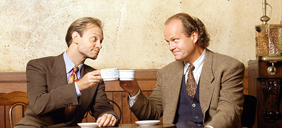Cet intemporalité bénéficie énormément à la série. En effet, elle a un côté théâtrale bien particulier. La plupart des épisodes n’ont besoin que d’un ou deux décors, et la série n’a eu que très rarement recours à des épisodes spéciaux ou des special guest stars pour faire rire son public. Dans ce sens, Frasier est l’anti Friends. La force des deux séries résident dans leurs personnages, mais les scénaristes de Frasier n’ont que très rarement été à court d’idées. Pas besoin de mariages à chaque fin de saison, de Bruce Willis ou d’épisodes à l’étranger. La seule contrainte est de donner un script à la hauteur de son casting.