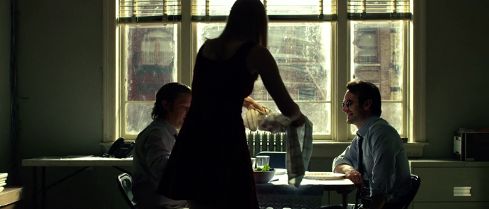 Une scène au téléphone, avec quelques petites blagues un brin sexistes de l’associé au sujet de la nuit qu’a passée notre héros aveugle, et hop, une nouvelle Demoiselle En Détresse. Il y a un cadavre à ses côtés, la police arrive, elle est très belle, ni une, ni deux, elle se retrouve en détresse en prison.