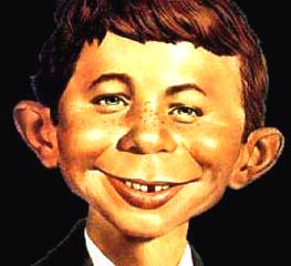 A l’origine, il y a le magazine préféré de Bart Simpson : MAD. Trois lettres qui résonnent aux oreilles de chaque américain comme le symbole de l’humour et de l’irrévérence. Difficile de décrire le phénomène MAD de l’autre côté de l’atlantique, mais sachez que chaque humoriste américain se réclame de MAD lorsqu’il s’agit de citer ses influences. Si vous ne voyez toujours pas de quoi je parle, vous reconnaîtrez sans doute la figure emblématique du magazine : Alfred E. Neuman, le petit rouquin aux oreilles décollées et à l’énorme trou dans la dentition.