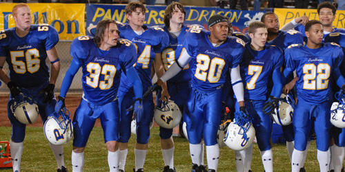 Pour comprendre pourquoi Friday Night Lights, saison 1, est si géniale, il faut prendre conscience que cette série ne parle pas au spectateur d’adolescents, ni de football américain, ni d’une petite ville du Texas. Elle ne parle pas de, elle vous imprègne de. Au départ, c’est très difficile. Les personnages sont nombreux. Les intrigues se croisent en tout sens. Commencer à regarder Friday Night Lights, ce n’est pas commencer à regarder une nouvelle série dont les premiers épisodes installent toute l’histoire. C’est soi-même s’installer à Dillon et aller au match du vendredi soir. La caméra à l’épaule tremblante nous met directement à la place d’un jeune à la cafétéria, d’un supporter dans les gradins, d’un membre de la famille Street, Saracen ou Williams. C’est une approche singulière. Et c’est en cela que la série est si bonne dans sa première saison. Vous faites partie de cette ville, vous vivez à son rythme. Au départ, vous arrivez avec vos gros sabots et vous n’adhérez pas à l’idée que le football est important, que dieu est un espoir. Puis vous écoutez les conversations des voisins, vous apprenez à les connaître, et rapidement, vous aussi, vous vous retrouvez à pleurer sur le sort de l’ex quaterback de l’équipe. Bienvenu à Dillon.