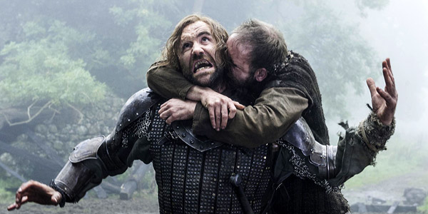 C’est pas mieux dans le livre ! Le combat entre Brienne et Clégane n’est pas dans le livre (il est mortellement blessé dans la baston de la taverne, celle du premier épisode de la saison). Et cette baston était formidable. Une belle conclusion pour les deux duos, et un beau combat où on n’arrive pas à se décider sur qui on veut voir prendre le dessus. La scène où Arya laisse son pote mourir était, elle aussi, et malgré ce que j’ai dit juste au-dessus, bien plus forte que dans le livre (parce qu’on a passé beaucoup plus de temps sur leur relation, justement...).