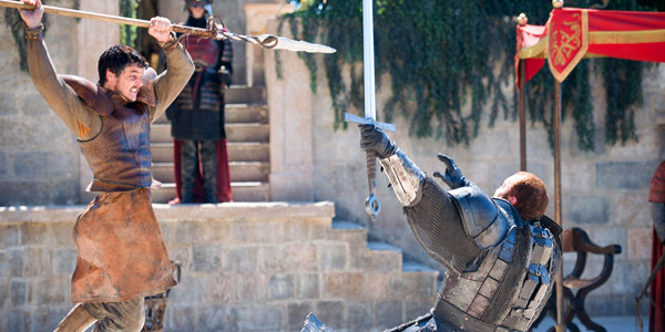 Je ne sais même plus de quoi il parlait, en fait. Tout ce dont je me souviens, c’est que j’en avais marre, que je voulais voir le duel promis, et que tout ce qui m’intéressait à ce moment-là, c’était de voir Oberyn se faire écraser la tête, sans raison, comme un cafard. Pas une histoire de cousin.