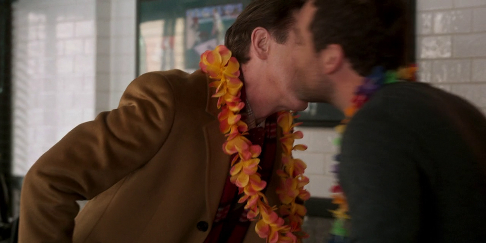 Et là, twist magnifique. Les fleurs, c’est pas parce qu’il est gay que Andrew en distribue à tout le monde, c’est pour célébrer le match de foot américain qui a lieu à Honolulu le soir même.