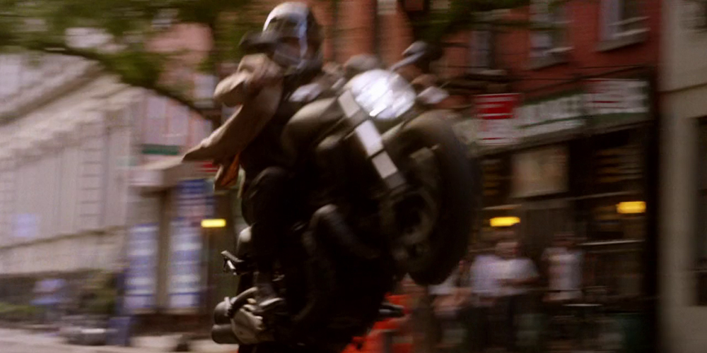 En revanche, on aura le droit à une scène où on rappellera aux spectatrices et spectateurs pas encore complètement convaincu·es que Dylan est un gros dur, qui en a, comme les vrais. Deux de ses collègues dégonflent le pneu avant de sa moto et guettent sa réaction.