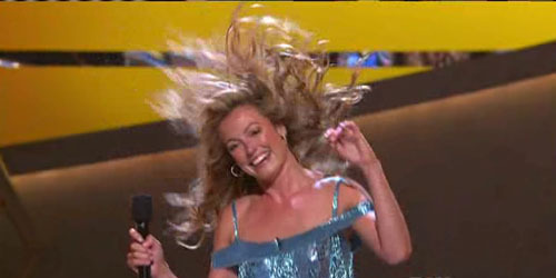 Qui n’aurait aucun intérêt si elle ne possédait la qualité que je crois être la principale des animateurs de ce genre d’émission : l’expression de leur intérêt pour l’émission elle-même. Elle semble sincèrement ravie de participer à l’émission tout en connaissant les limites de son rôle. Elle a toujours un petit mot d’encouragement pour les danseurs après les numéros, surtout pour ceux qui vont vraisemblablement obtenir des commentaires glaciaux de la part du jury ou une remarque enthousiaste après une prestation réussie. Ses courtes interventions ne sonnent jamais forcées ni hypocrites puisqu’elle semble avoir une réelle empathie avec les candidats. Elle semble admirer leur passion et percevoir leurs efforts, intérêts que ne transmet jamais Ryan Seacrest, le présentateur d’American Idol. Il se pose en personnage central de l’émission cousine de SYTYCD, les participants n’apparaissant plus que comme les figurants du véhicule à l’origine de sa célébrité.