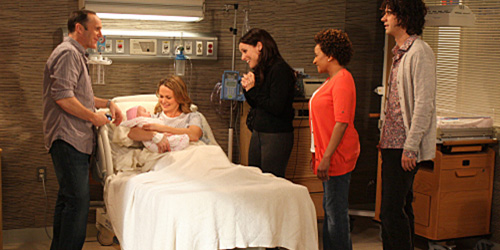 Souvent, dans une sitcom, un accouchement est l’occasion de produire un épisode beaucoup moins drôle qu’à l’habitude. Il commence en général avec la perte des eaux à un moment inopportun, la distribution entière se met à paniquer, se retrouve à l’hôpital, tente quelques blagues mais surtout se complaît dans des répliques qui célèbrent le miracle de l’arrivée d’une nouvelle vie et questionnent le sens de l’existence avant de se réunir autour de l’enfant-roi.