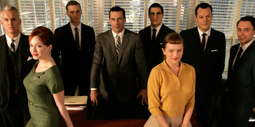 N’ayant absolument rien à voir et bien plus significatif pour l’amateur de bonne fiction télévisuelle, Mad Men est le petit chef d’œuvre du moment. Un monstre de qualité, même, dont je suis simplement folle amoureuse. Pour re-situer à ceux qui ont dormi trois mois au bord de l’eau, il s’agit de la première série produite par une petite chaîne ne diffusant que des films, AMC. Celle-ci a tendu les bras à l’ancien scénariste des Soprano, Matthew Weiner, après qu’il ait été bêtement rejeté de partout. L’histoire se situe en 1960 dans le cabinet publicitaire Sterling Cooper sur Madison Avenue, où l’entourage du protagoniste Don Draper vit difficilement l’un des tournants du XXème siècle.