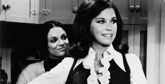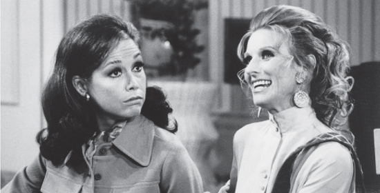 La deuxième guerre mondiale a marqué l’arrêt de la célébration des femmes émancipées et fait des années 1950 et 1960 une période de retour aux valeurs très traditionnelles. Les comédies de l’époque, à la télévision en particulier, reflètent cet état d’esprit et elles se partagent en deux genres : les sitcoms campagnardes hors du temps (à la Green Acres) et les sitcoms familiales où la femme n’a qu’une seule place, à la maison aux côtés de son mari (à la I Love Lucy et au Dick Van Dyke Show, dans laquelle Mary Tyler Moore herself incarne la gentille femme au foyer d’un scénariste de télé).