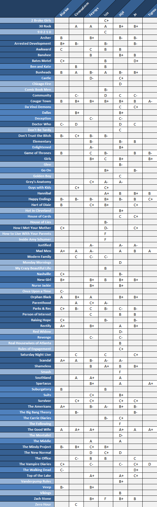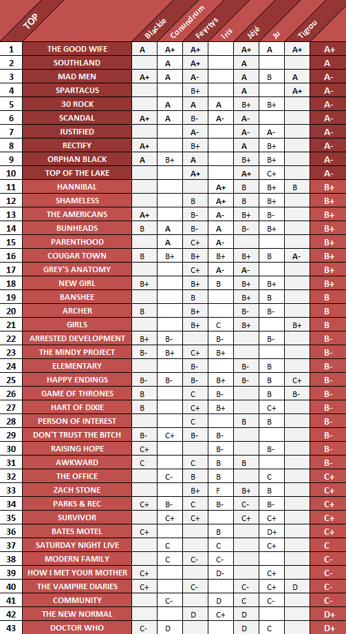 En attendant d’établir la liste la plus complète en réponse à cette question, il est temps de passer aux tableaux du classement des meilleures séries du début 2013.