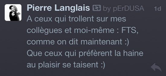 Oui, cela entraine des attaques, comme celle à laquelle Pierre faisait allusion dans ce message, avec une virtuosité des mots telle que nous n’avons pu nous empêcher de le reprendre (avant que le tweet disparaisse, sans doute suite à un problème technique).
