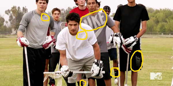 Et c’est ainsi qu’a été écrit le troisième épisode de la saison 4 de Teen Wolf, avec sa longue séquence de Lacrosse, le sport revenu d’entre les morts, une publicité gigantesque pour Nike à peine déguisée. Une scène d’entrainement qui commence à la dix-huitième minute et qui s’achève à la vingt-cinquième. Sept minutes entières où les logos Nike sont présents dans chaque plan.