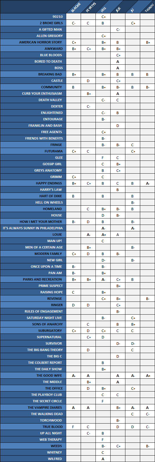A la différence près qu’à la place de Terriers et Rubicon, on trouve cette année Hart of Dixie et American Horror Story, dont le niveau, l’ambition et l’exécution sont à dix mille coulées au dessous des premières.