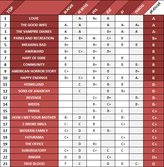 Et il est déjà trop tard pour les succès d’estime (Prime Suspect, Pan Am) ou d’audience (New Girl, Once Upon A Time) abandonnées par la quasi totalité de la rédaction…