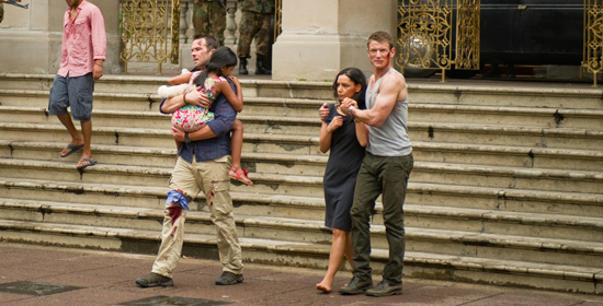 Visuellement, la série est crédible : on a l’impression d’être au Kosovo, en Somalie, dans les townships du Cap. Les reconstitutions de ces endroits dévastés par les guerres et la misère sont parfaitement anxiogènes et permettent à Strike Back, au détour d’une petite phrase, d’une scène en arrière-plan, d’interroger brièvement les contrastes des conditions de vie dans notre monde contemporain.