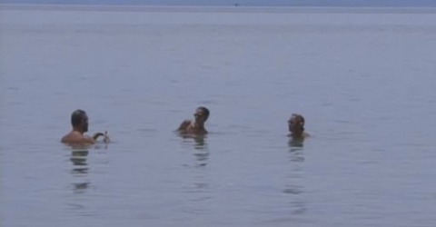 Dans la minute suivante de l’épisode, alors que Rudy met de la crème solaire dans le dos de Richard, l’ancien militaire s’adresse aux caméras en demandant que soit assuré que cette scène passe à la télévision. La dimension télévisuelle ne leur a pas non plus échappé.