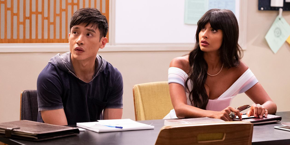 Par essence, l’épisode est un parchemin sur lequel on réécrit pour l’étendre, l’approfondir, continuer l’histoire. En cela, la série dans son ensemble tisse un lien continu mais continuellement changeant. En suivant notre groupe de six fous, The Good Place prend le risque de se redire, de se dédire, de nous perdre en chemin. Pourtant, elle dépasse cela en se parodiant elle-même, en jouant de sa structure (le reboot), de ses propres scènes (Eleanor qui nous rejoue la catastrophe du pilot dans le quatrième épisode ici), de sa propre mythologie (le triangle amoureux). En pastichant ses acteurs même : dans le double premier épisode, magistral, Tahani écrit un livre de développement personnel qui fait alors écho au travail de Jameela Jamil, l’interprète, et son mouvement “I Weigh”. Les showrunners se permettent de jouer de la popularité de la jeune femme pour faire rire sans ridiculiser : c’est simple mais brillant.