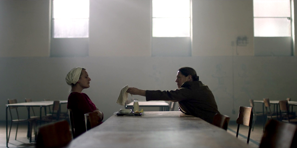 On fait également un tour du côté des colonies donc, où Emily est détenue après avoir volé une voiture et renversé un garde. Là où elle n’était que périphérique dans la saison 1, la jeune femme devient un point d’entrée non négligeable, qui a encore a prouvé sa pertinence narrative mais enfonce un peu plus le couteau de la dystopie terrifiante. Elle aussi entre dans une certaine résistance, exerçant son pouvoir de vengeance non pas contre les hommes, encore hors d’atteinte, mais contre une femme qui, fut un temps, a collaboré. Non, il n’y a pas d’unanimité dans l’adversité. Et c’est dévastateur.