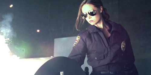 Après la petite écolière, après la militaire, voilà la policière, contrôle C, contrôle V parfait du costume de Robert Patrick dans T2, jusqu’au lunette (toujours aussi affreuses).