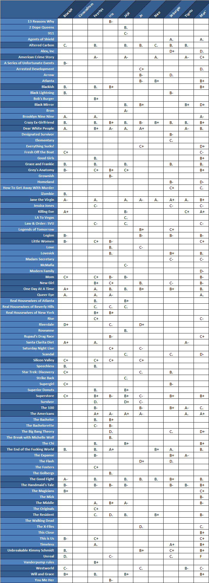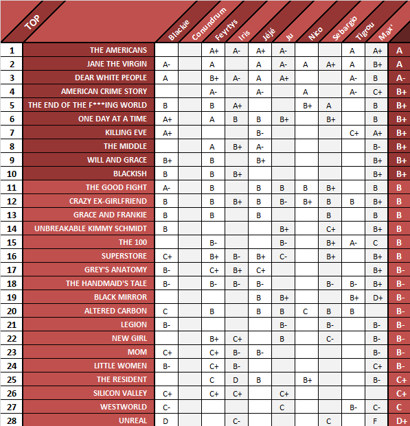 — Pas une seule série de Super-Héros/Super-Héroïne dans le tableau rouge (pauvre Flash et Jessica Jones...)