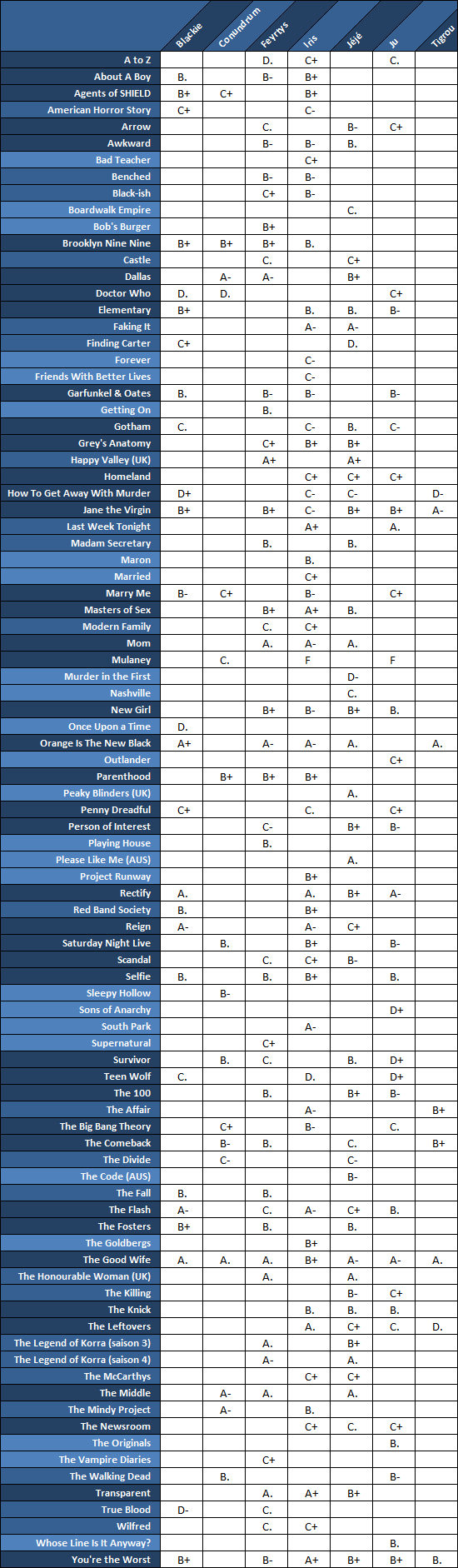 Le tableau de toutes les séries de la fin 2014