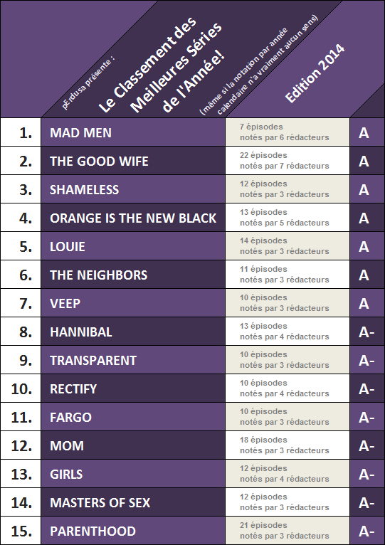 (ie. le tableau qui fait preuve d’un manque flagrant de rigueur scientifique et contribue à l’abrutissement des masses en établissant bêtement un classement des meilleures séries de l’année alors que ça n’a strictement aucun sens de les noter sur l’année calendaire - ndlJu)