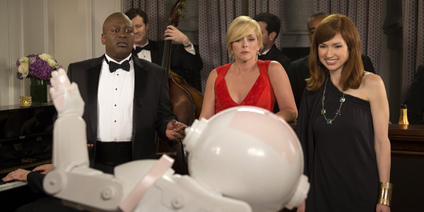 Si Krakowski, qui encore une fois hérite d’un rôle originellement joué par une autre actrice, a mis du temps à trouver ses marques dans 30 Rock, elle était son meilleur élément en fin de série. On se retrouve dans une situation assez similaire où les scénaristes n’ont pas encore trouvé un angle pour exploiter les talents de l’actrice sans la traiter comme une version légèrement plus réaliste de Jenna. La voir être jalouse d’un robot et essayer de l’enterrer était l’unique moment de la série où les scénaristes m’ont perdu. C’est en faire beaucoup trop avec peu de bon matériel.