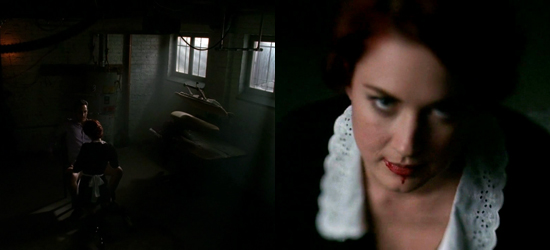 Comme je me suis imposé de ne choisir qu’un exemple par série, la fellation pratiquée par Moira, la femme de ménage, me semble la plus emblématique de la série. En effet, American Horror Story joue sur les peurs et les crimes les plus ancrés dans l’imagerie populaire américaine (fusillade dans un lycée, le Dahlia Noir…) Et je trouve qu’avoir le sexe mordu et arraché lors d’une fellation entre parfaitement dans cette optique.