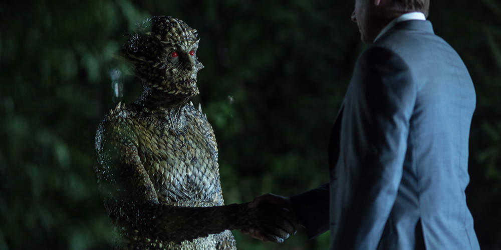 Revivre le passé en explorant ses vieux dossiers avec un œil mature montre l’importance que l’on a accordée à des évènements qui ne le méritaient peut-être pas. Si l’idée d’un animal devenu lézard garou après avoir été mordu par un humain a du mal à passer, elle recharge un peu les batteries d’un Mulder qui en a bien besoin. Et cela est parfois fait avec humour, comme les réactions de la vraie Scully, ou entendre Rhys Darby appeler son chien [1], ou les motivations du meurtrier de l’épisode, l’épisode ne peut s’empêcher de se moquer des femmes, des transgenres, des psychologues et un peu de la gueule de son téléspectateur aussi.