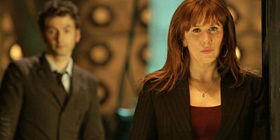 Au cours des vingt premières minutes de l’épisode, on suit les investigations de Donna et du Docteur en parallèle, tandis qu’ils passent plusieurs fois à deux doigts de se croiser. Dans un premier temps, l’effet comique est immédiat, appuyé par quelques séquences dont le timing comique a du être un petit casse-tête et une musique aussi enjouée que réjouissante. Et s’il passe bien quelques secondes à parler tout seul dans le Tardis, cet épisode est sans doute celui, « Love & Monsters » et « Blink » mis à part, où David Tennant a eu le moins de répliques à apprendre. Au final, ces croisements débouchent sur une scène de retrouvailles visuelle à mourir de rire, dans laquelle Catherine Tate se voit obligée de mimer une demi-page de dialogues, ce dans quoi elle excelle. Le « Doctor Who Confidential » de la semaine, making of hebdomadaire diffusé immédiatement après l’épisode sur une chaîne du réseau BBC, vaut le coup ne serait-ce que pour voir la lecture initiale et le tournage de cette scène, et ce qu’elle doit à Catherine Tate elle-même.