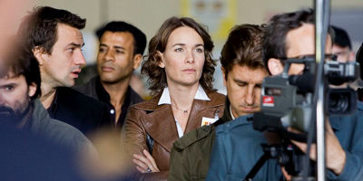 On avait un parti-pris au départ qui peu à peu s’est émoussé. On départ, on voulait avoir un style de réalisation différent pour les différents univers de reportage. L’un pour Schneider, le reporter de longue haleine, l’autre pour Michel Cayatte et le troisième pour Florence Daumal, la journaliste politique. Au départ, on voulait un style assez classique pour Florence : plans large, plan moyen, champ, contre-champ. Un style très edgy pour Thomas Schneider qui était l’homme d’action, on se modelait pour lui sur « Bloody Sunday » avec de la caméra à l’épaule, une réalisation extrêmement nerveuse. Et pour Michel Cayatte, notre référence c’était le film de Michael Mann, « The Insider » (« Révélations ») dans lequel il arrive à créer de l’intimité en utilisant un grand angle avec le personnage très défini au premier plan, et avec une inclusion du décors en second plan.