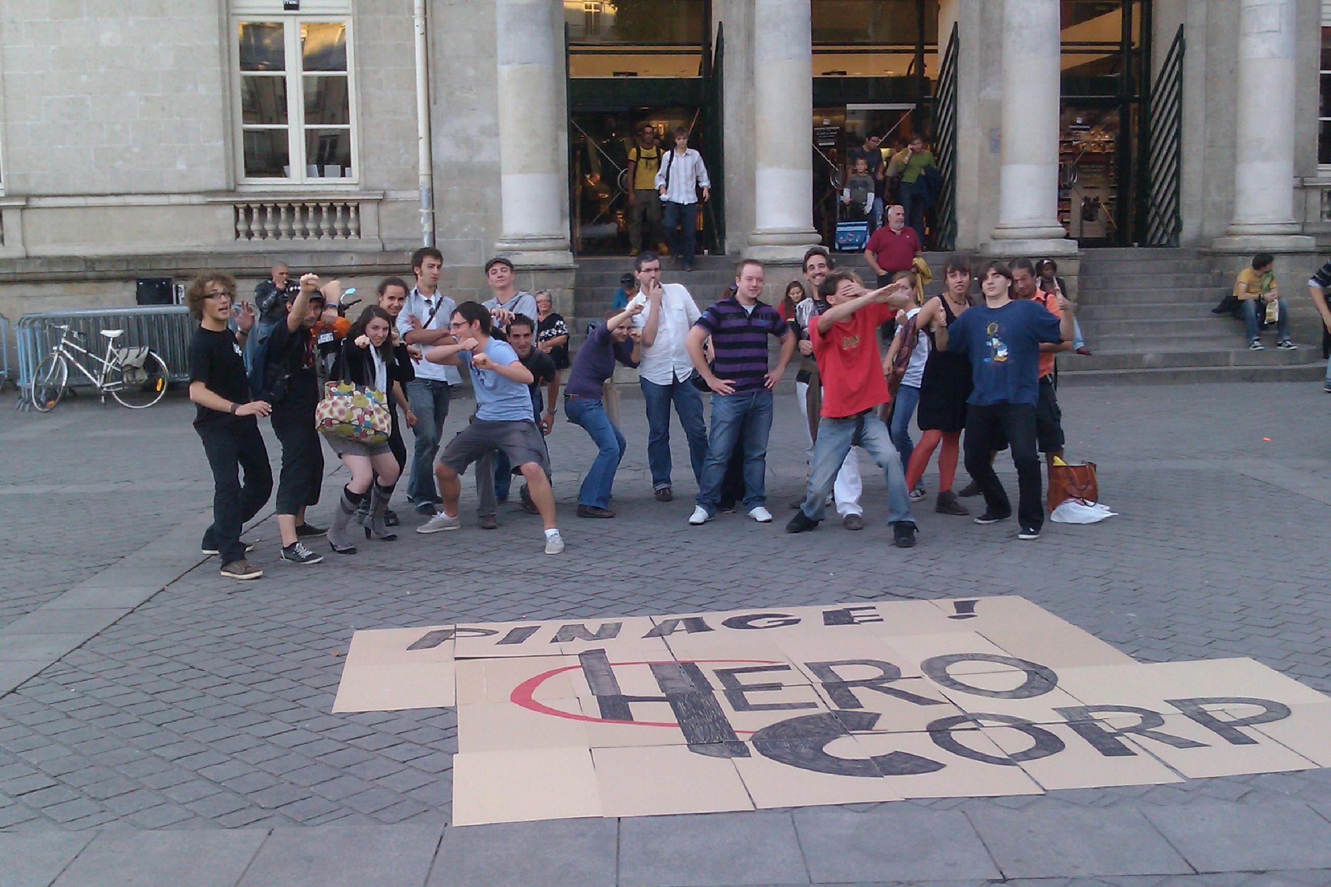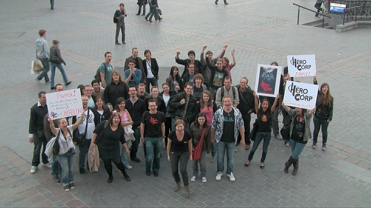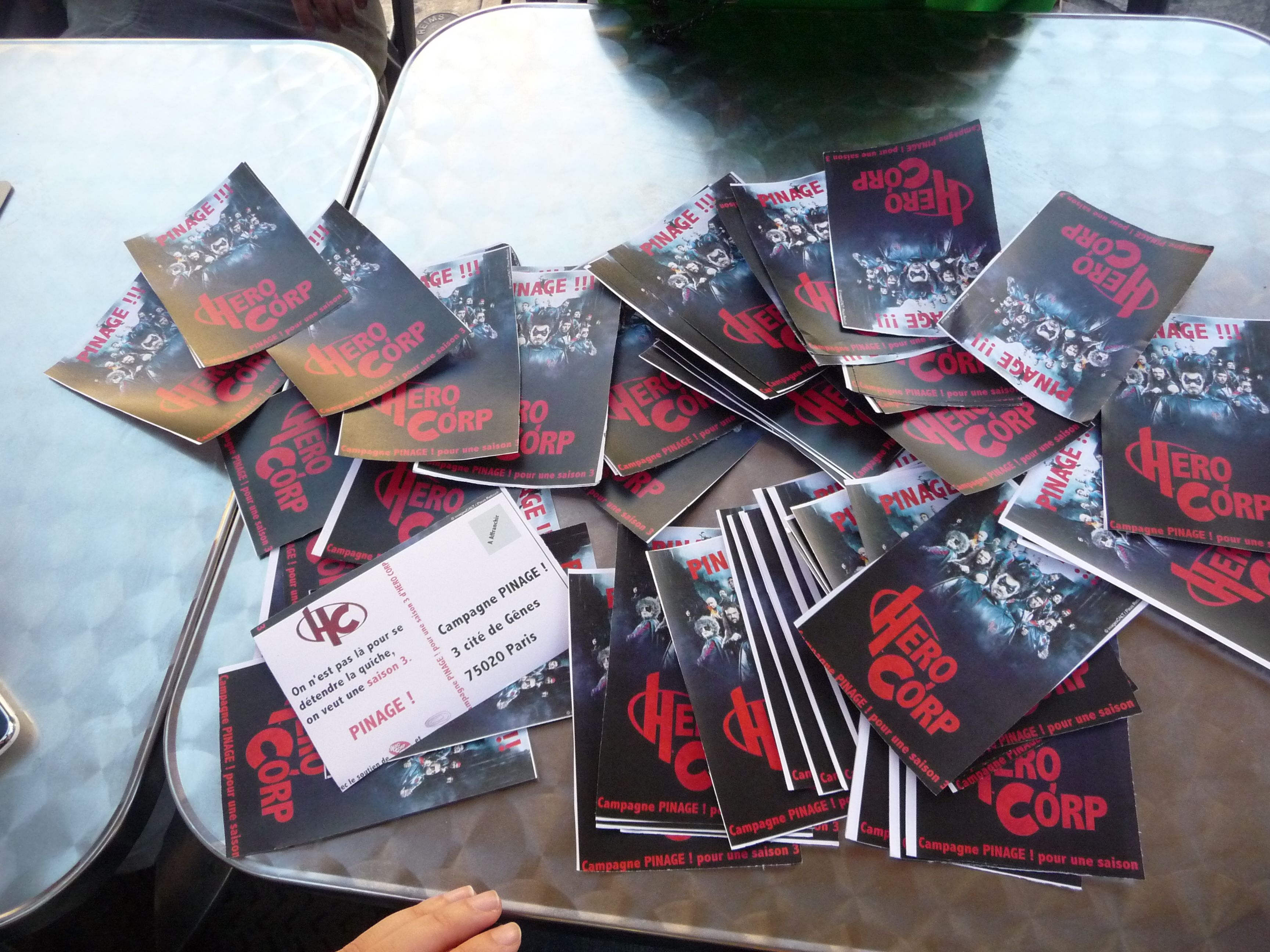 Un succès sans précédent en France ! Mardi 21 septembre à 19h, 13 villes (Lille, Reims, Nantes, Rennes, Toulouse, Amiens, Nice, Lyon, Brest, Tours, Aix-en-Provence, Montpellier, et Orléans) organisaient des Pinage Events — rassemblements de fans de la série « Hero Corp » qui souhaitaient témoigner de leur ferme volonté de voir une 3e saison. En tout 310 personnes se sont rassemblées (chiffre organisateur, mais la police n’a pas compté !)